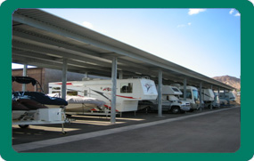 Covered parking spaces on asphalt |